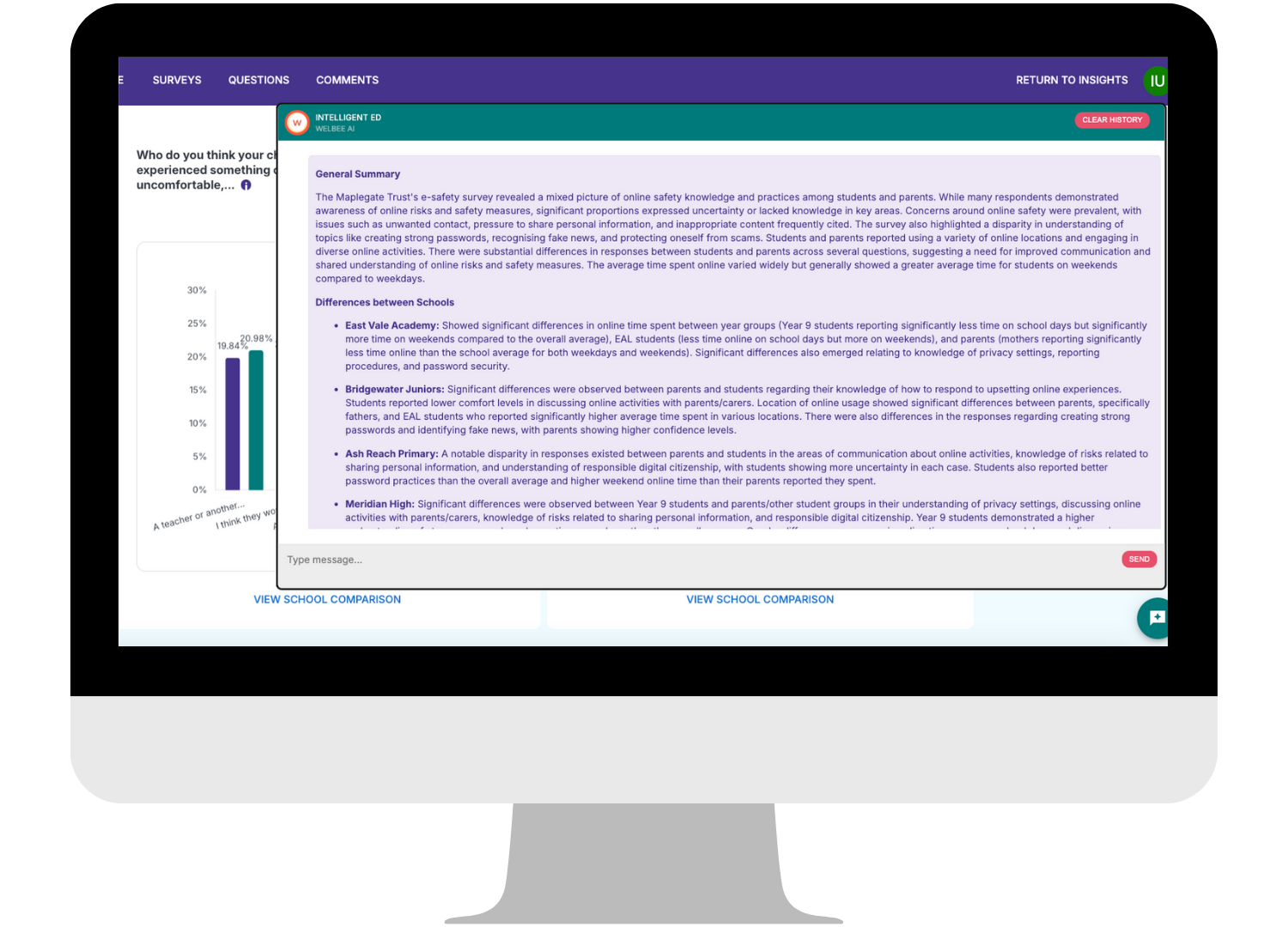 Reduce the time taken to analyse survey results and moving to action — imagine the time saved across multiple surveys and, for trusts and groups, across multiple schools.
