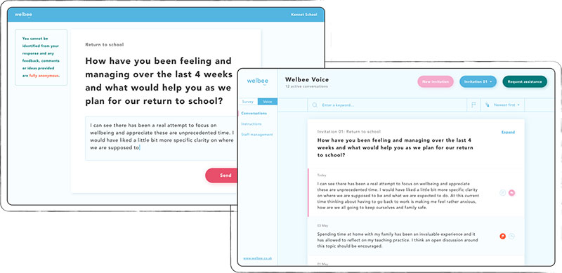This doesn’t mean you should wait to continue to ask for feedback or that you shouldn’t look for specific feedback on post-survey actions. That’s why we added Welbee Voice Pro, to allow you to continually follow up anonymously with staff. You can send messages to all staff (or to groups as small as eight) to seek feedback on actions you take after your survey, ask further questions, encourage them to raise issues that are important to them or to suggest ideas.