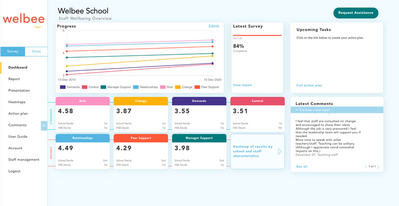 Running Welbee Survey annually will automatically track your progress against previous scores and continue to benchmark you against other schools. Having this in your easy to use dashboard means you can easily share information with staff, governors and inspectors and demonstrates your commitment to understanding and reducing the pressures your staff face.