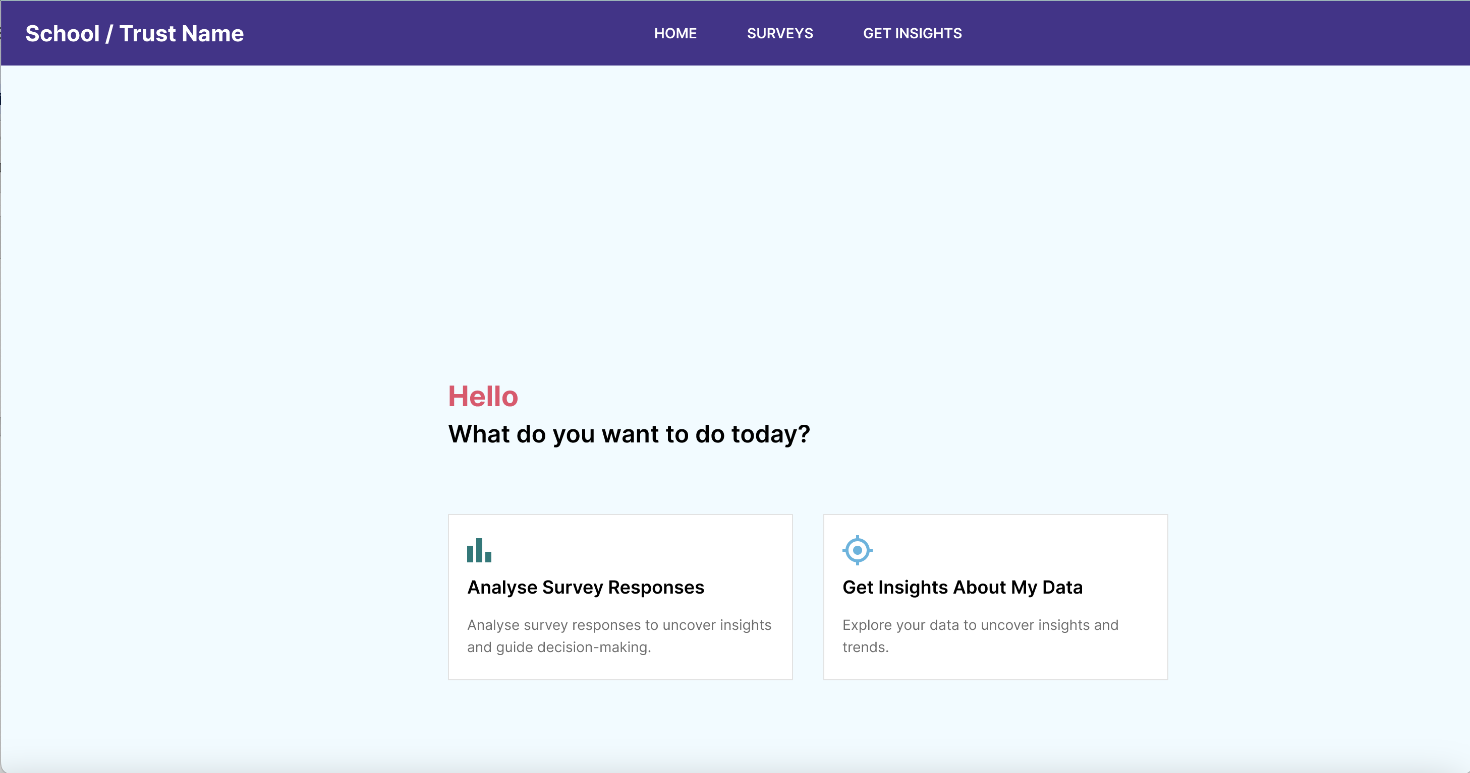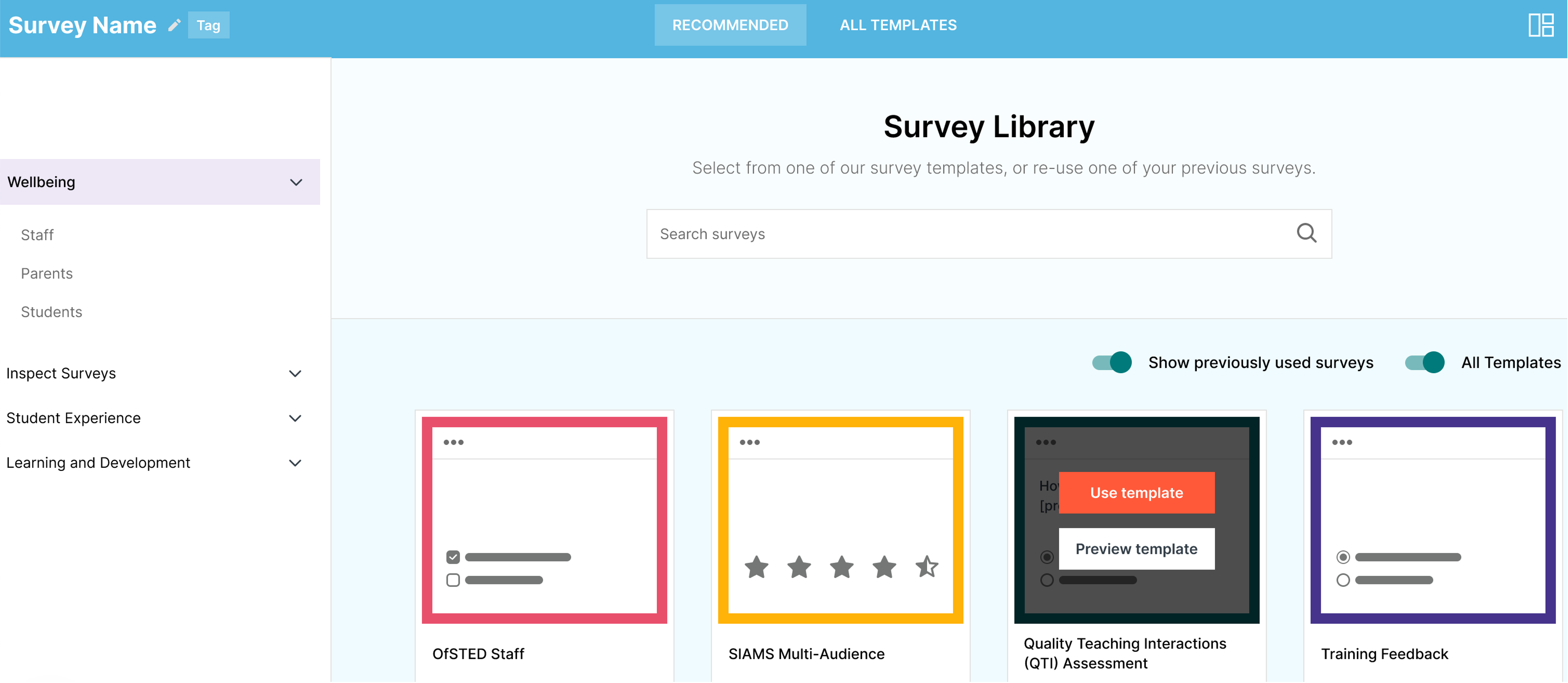 Create and launch a survey to staff, students and/or parents in under 2 minutes and collect insights with custom questions for each audience. Choose from a template or create your own bespoke survey.